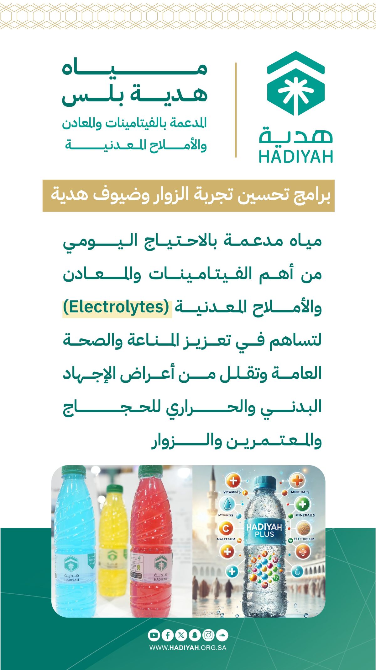 The first Saudi association specializing in serving pilgrims, Umrah performers, and visitors. The association accompanies the Guests of God on their journey of faith, from arrival to farewell, starting from the land, sea, and air border crossings, arriving at Makkah Al-Mukarramah, Madinah Al-Munawwarah, the holy sites, and the routes and locations of pilgrims, Umrah performers, and visitors.